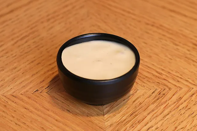 Burger bun, charcoal grilled beef, caramelized onions, arugula, dipped in truffle sauce with fresh cream mozzarella cheese