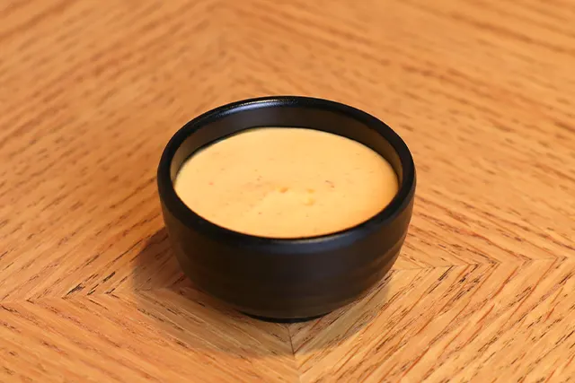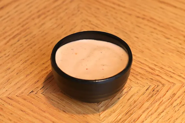 Crispy fried onion rings served with cocktail sauce