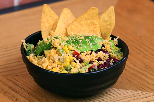 فاصولياء حمراء، ناتشوز، خس، بندورة، أفوكادو، فليفلة، ذرة، تشيدر، تاكو