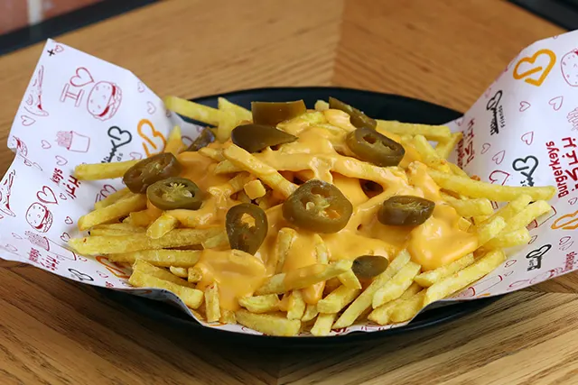 Frensh fries, cheddar sauce.Spicy Jalapeno