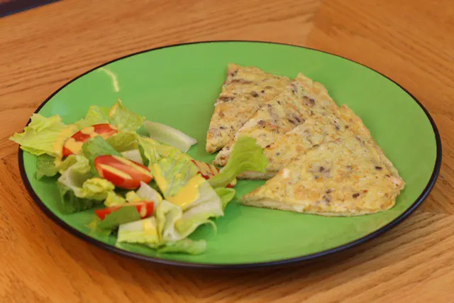 التوست الصحي بالسبع حبوب، بيض أومليت، فطر، حبش مدخن، جبنة موتزوريلا.