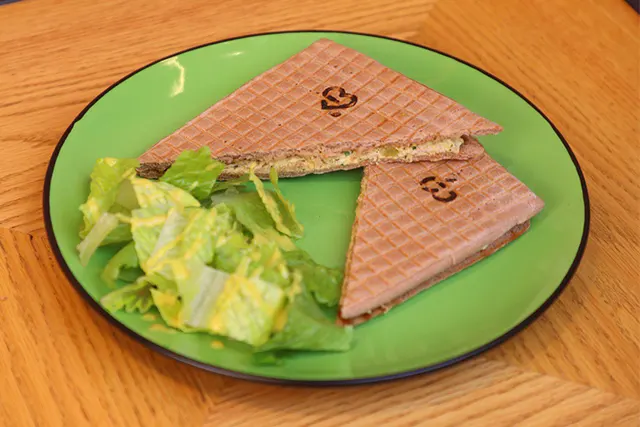Healthy panini bread, tuna, pickles, parsley, light homestyle sauce.